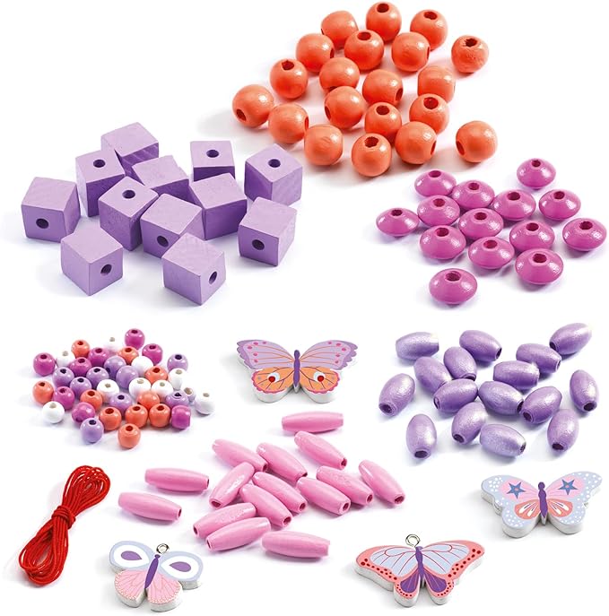 Drewniane koraliki do robienia biżuterii Motylki Djeco - zabawki kreatywne dla dziewczynek
